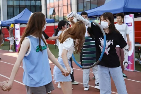 ②完成后由下一组队员进行。统计总分,分高的队伍获胜10.同心且同行