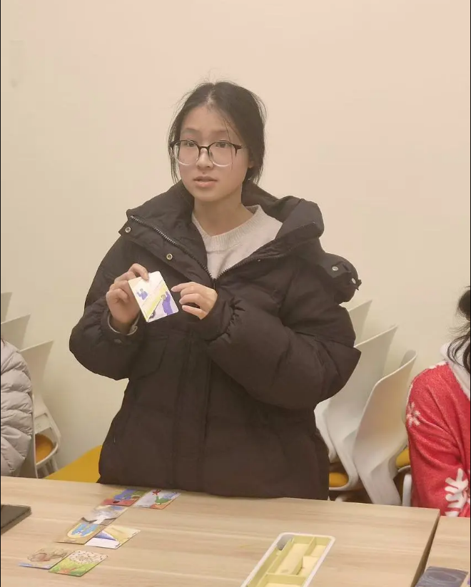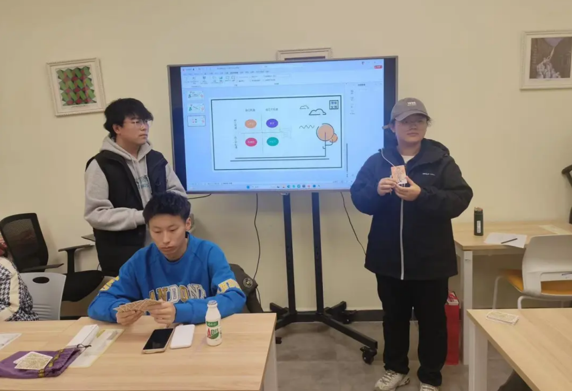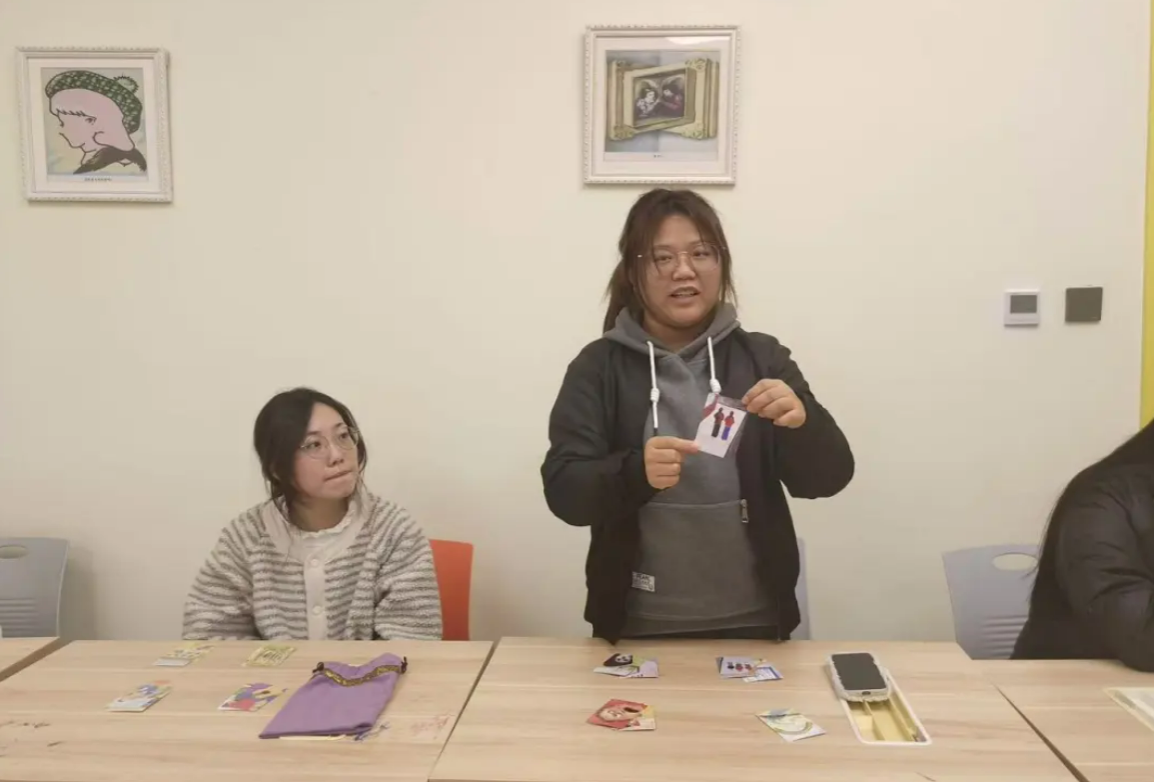 接下来是以卡牌为媒介,带领参与者们展开一场与自我的心灵对话,进而充分的认识自我,再与他人建立更加深厚的联系。在此部分是以乔哈里窗为理论基础,同学们一起探秘了公开的我、盲目的我、隐藏的我、未知的我。最后由带领者总结了乔哈里窗在人际关系中的应用,通过了解自己在不同区域的表现,调整自我认知,提升自我意识,增进理解和信任才能建立和谐的人际关系。