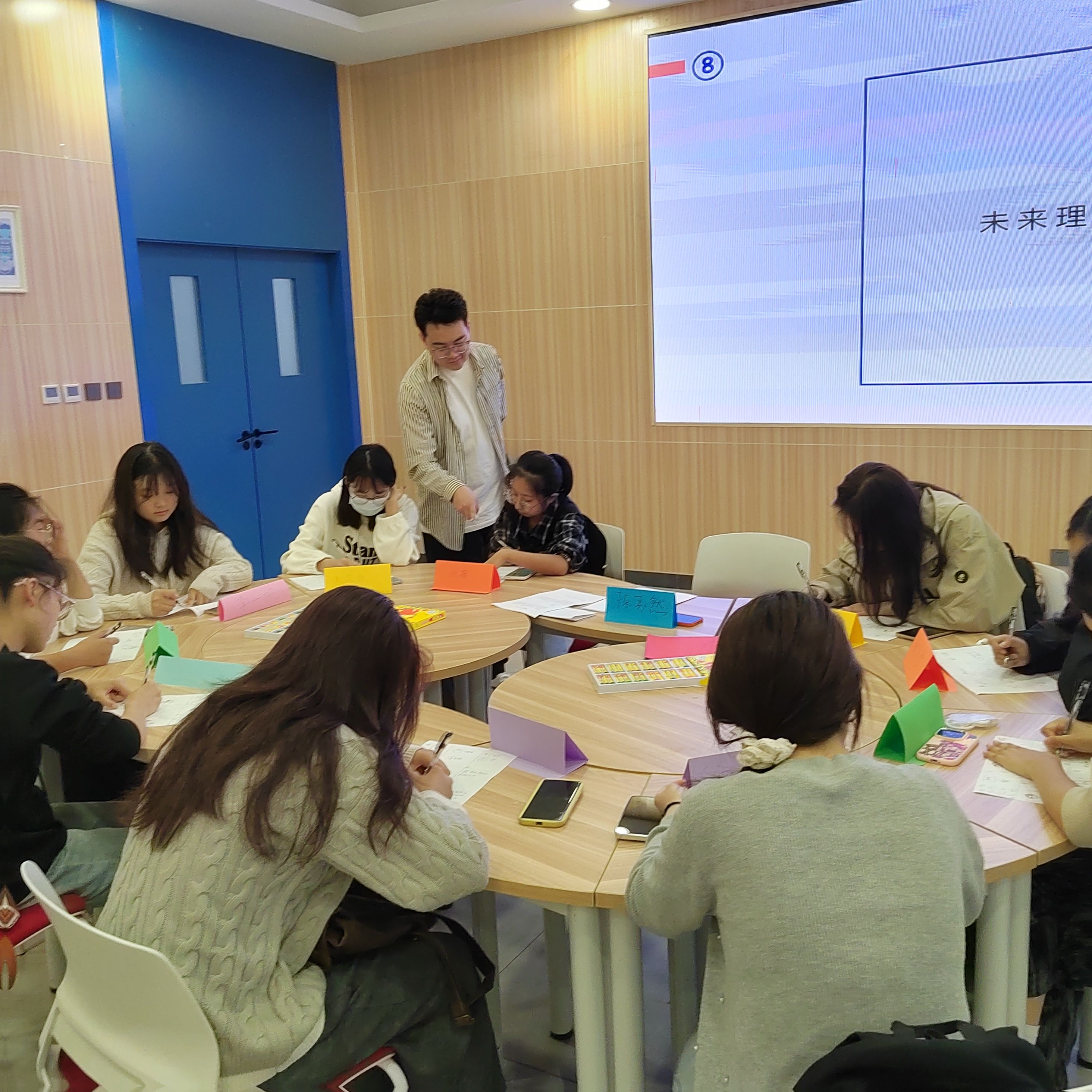 活动开始,陈老师向同学们介绍此次活动的主题,引出“生涯唤醒”的含义和重要性,强调拥有呼唤的学生的生活意义、选择效能、总体幸福感也都更高。随后带领同学们一起进行自我介绍破冰、真心话大冒险,以及探讨对专业的选择因素和了解情况,使大家快速情感联结,从陌生到相互熟悉、建立友谊,敞开心扉、提升勇气,增强团队意识与凝聚力。