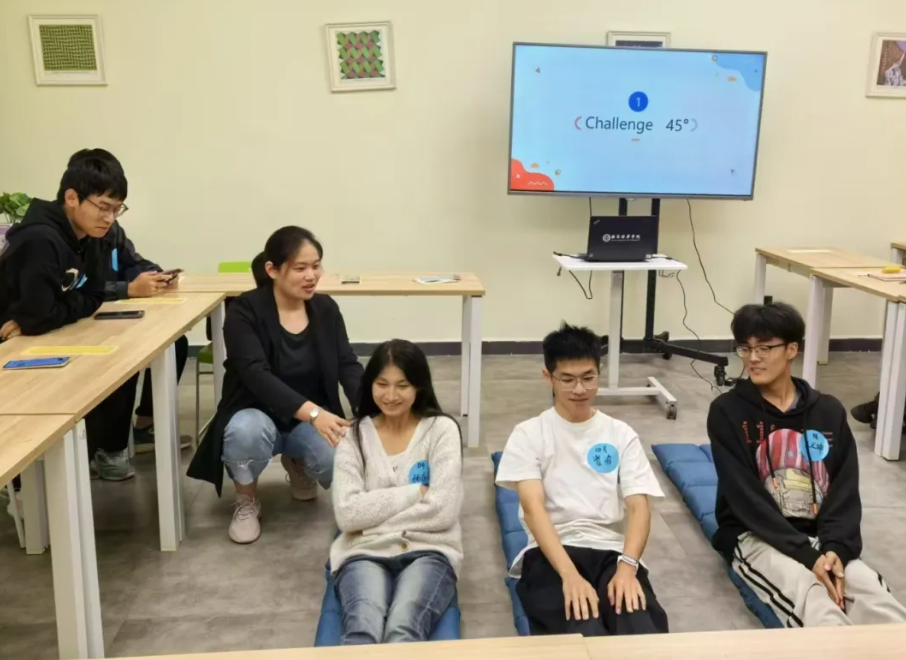 活动从身体体验45°游戏开始,同学们积极参与体验。