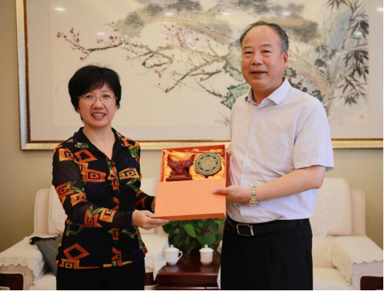广西外国语学院党委书记周江煜向学校赠送礼物