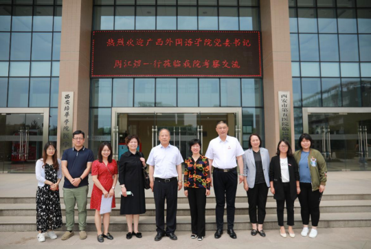 5月14日,广西外国语学院党委书记周江煜,党群工作部副部长、党委组织部部长邓丽艳,行政党群工作部党支部书记蒋成军一行3人到学校开展党建工作调研,并围绕校园文化建设及思想政治工作开展交流座谈。西安培华学院校党委书记罗新远、党委宣传部部长柳雨、医学院党委书记王平安、马克思主义学院院长史晓眉出席了会议。