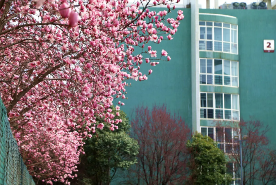 除了花朵,藏不住的春色也在操场、乒乓球场绽放着,蓝天、绿草和阳光,笑容写在脸庞上,培华人尽情书写着青春。