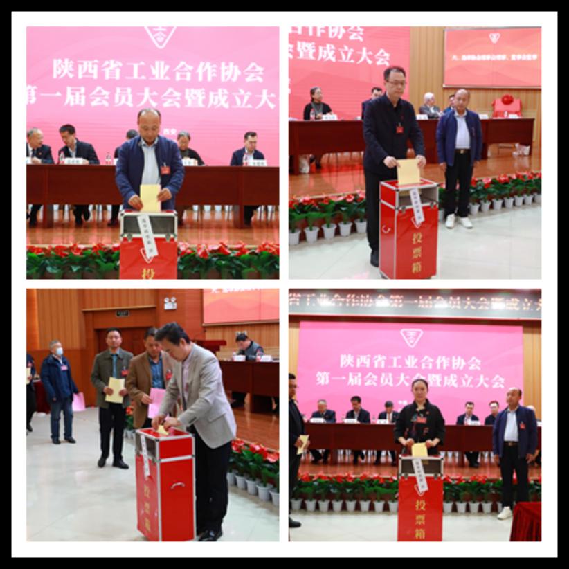 与会领导为新当选的理事长、监事长、副理事长以及秘书长颁发聘书。田玉萍、单耀峰、张欣胜、姜波等同志共同为陕西省工业合作协会揭牌。西安纺织控股有限责任公司纪委书记杨柳宣读了陕西省人大常委会原副主任、省政府原副省长李金柱同志向大会发来的贺信。