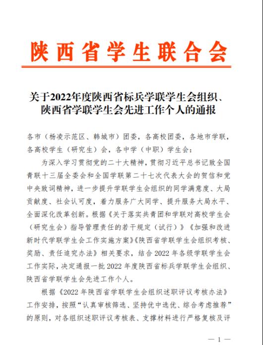 近日,陕西省学生联合会下发了《关于2022年度陕西省标兵学联学生会组织、陕西省学联学生会先进个人的通报》,西安培华学院员泽阳同学被评为“2022年度陕西省学联学生会先进工作个人"。
