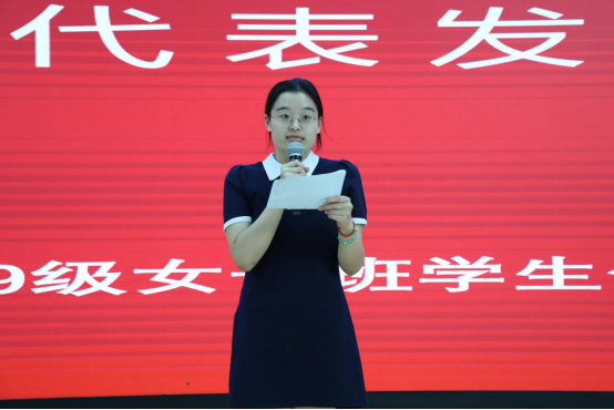 西安培华学院女子学院2019级学生张婧萱作为学生代表发言,她分享了自己进入女院的故事,表示将会永远铭记老师的教诲和亲切关怀,一直追寻探寻世界和自我求学的脚步。