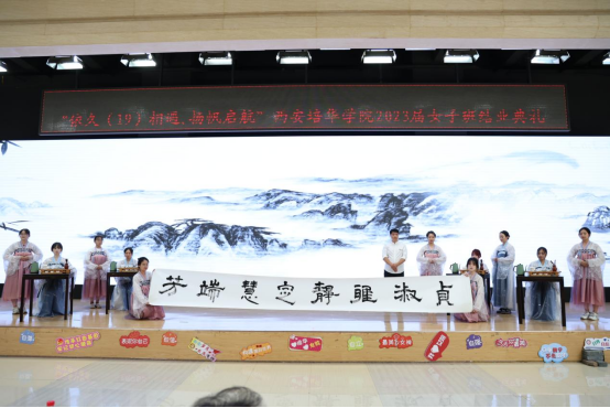 活动现场,女子学院师生代表展示了茶艺与书法表演。芳、端、慧、定、静、雅、淑、贞几个字代表了培华领导和教师,培华女子学院对毕业生的辛勤培育和祝福。培华学子用敬师礼表达了莘莘学子对恩师的感谢。