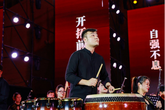 《龙腾虎跃》主旋律与鼓声交相奏鸣,震撼人心,表现了人民龙腾虎跃、奋勇前进的风貌。