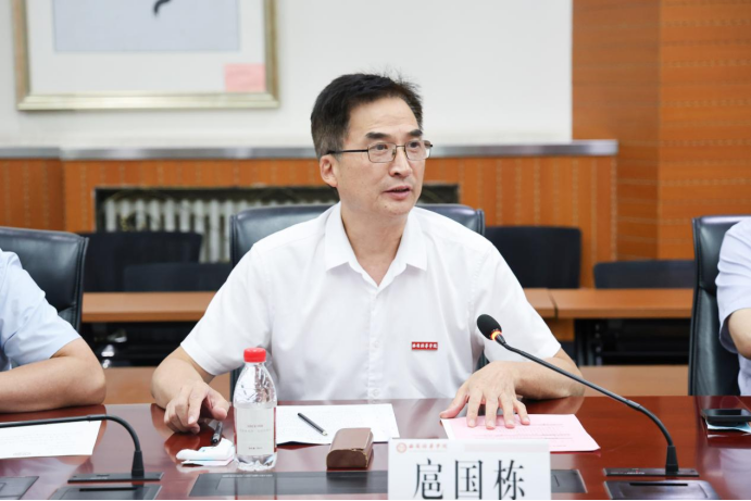 新疆生产建设兵团第十师北屯市卫生健康委员会党组成员、总医院党委书记、院长聂信胜介绍了北屯市总医院的情况,他说到,医院与西安培华学院在今年8月中旬已签订校企合作协议并建立实习就业基地,搭建起了一个集教学、科研、临床实践于一体的综合性平台。他希望,通过深化合作,双方能够继续在人才培养上实现更高效的交流与协作,为学生提供更多实习和就业机会,同时在科学研究方面进行更深层次的合作。