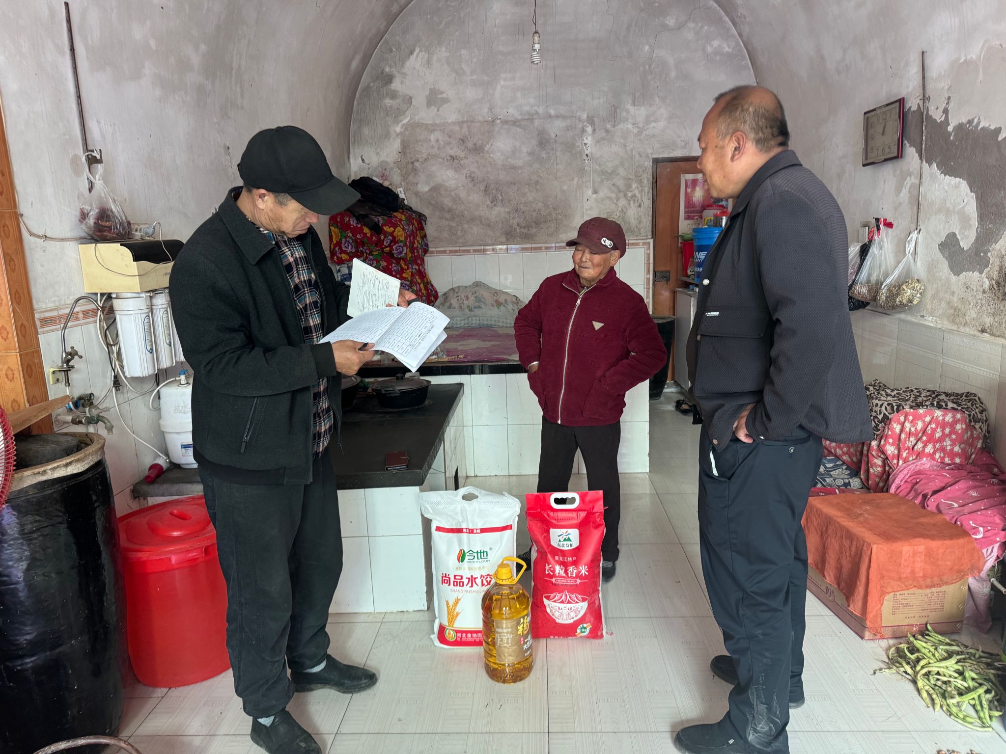 活动开展前,驻村工作队以“精准对接需求”为核心,通过入户走访、与村“两委”座谈等方式,全面摸排村内孤寡老人的情况及实际需求,同步建立专项帮扶台账,确保帮扶工作“底数清、情况明”。针对老人秋冬季节保暖、日常饮食等需求,工作队及时汇报学校,采购足量米面油等生活物资,切实将“贴合实际、雪中送炭”的帮扶理念落到实处,让慰问物资真正服务于老人生活所需。
