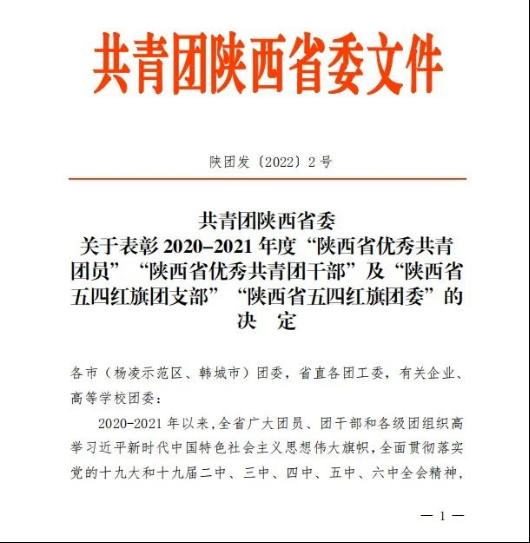 近日,为表彰先进,激励广大团员、团干部和基层团组织奋发有为、再创佳绩,共青团陕西省委发布了《关于表彰2020-2021年度“陕西省优秀共青团员”“陕西省优秀共青团干部”及“陕西省五四红旗团支部”“陕西省五四红旗团委”的决定》,其中,我校传媒学院新闻学专业2019级2班团支部被评为2020-2021年度“陕西省五四红旗团支部”,我校智能科学与信息工程学院2018级电子信息工程专业学生许向泽被评为2020-2021年度“陕西省优秀共青团员”。
