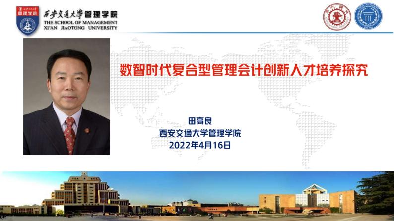会上,西安交通大学博士生导师、管理学院副院长田高良教授主讲了《数智时代复合型管理会计创新人才培养探究》。田教授是教育部会计学专业教指委委员、财政部管理会计咨询专家、陕西省工商管理类教指委主任委员、全国会计学术类领军人才,他分享的“打造面向未来的智能财务人才培养生态系统”令听者思路顿开、受益匪浅。田教授表示,要从科技、专业、生态、机制四个维度赋能产教融合,打造多主体协同育人的长效机制,构建产教融合、校企合作的良好生态,形成良性循环的机制,有效激发各方的积极性和创新活力,有力推动高校人才培养模式变革,为培育一批创新型、复合型、应用型、高素质的国际化智能财务人才搭建平台。