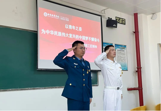 为了让学生更加深刻地认知和感受劳动精神、劳模精神、劳动精神,建筑与艺术设计学院学生干事崔菲邀请退役士兵——原中国人民解放军海军下士苏聚宝、空军下士王天誉进课堂,为同学们讲述军营故事,成长历程、劳动精神,进一步强化学生思想认知,树牢榜样引领。