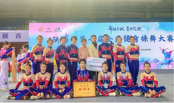 此次大赛是体育学院健美操专业学生2023年的第一场省级大赛。学校代表队凭借着整齐划一的动作、高超的技术技巧和富有青春朝气的感染力,在众多参赛队伍中脱颖而出,最终获得了“全国全民健身操等级推广规定动作有氧舞蹈二级”特等奖的优异成绩。