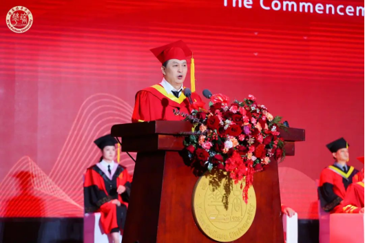 理事长姜波博士代表学校为全体毕业生上了深情的最后一课,他向全体2023届毕业生致以由衷的祝贺,向立德树人的老师们、含辛茹苦的家长们和关心支持学校发展的社会各界表示衷心的感谢,他回顾2023届毕业生在四年前入校时的欢乐与期待,感慨万千。他讲到,毕业生们即将离开母校踏上人生新的奋斗征程,每个人都不要忘记自己十几年来的努力,勇敢面对未来的一切,不断奋进,成为一个人格、思想、经济都独立的人。他叮嘱同学们,健康、阳光、快乐的生活是每个人的奋斗目标,还亲切地说,每一位培华学子,无论在未来的人生中遇到了挫折还是喜悦,都可以给波哥的手机发条信息,也可以回到母校倾诉心里话,培华永远是每位培华学子的家。