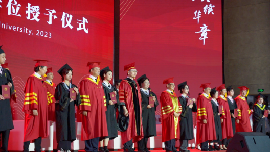 校领导为毕业生代表颁发毕业证书、学位证书,并拨穗授礼,送上最美好的祝福。