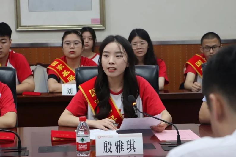 2023年西部计划志愿者代表张昊敏、颜世琪、高璐、杜靖良发言,表示将会带着“绝不后悔、开拓进取、坚持到底”的态度,积极投身于建设和谐西部中去,为西部的开发与繁荣作出贡献。