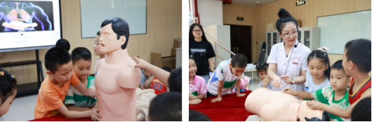 小朋友们在心理小课堂教室了解心理与行为的关系,在儿童急救知识小课堂学习急救知识。