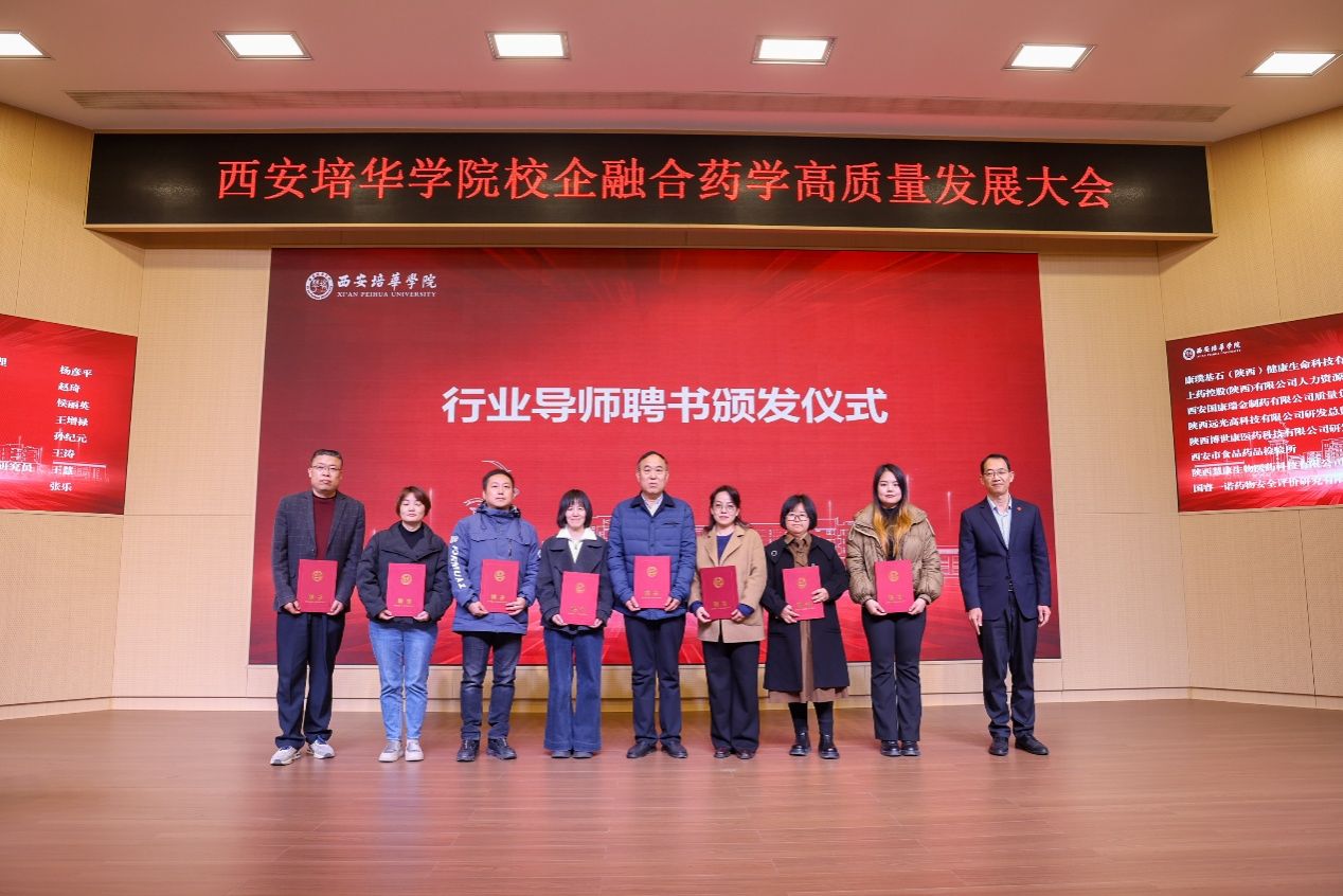 大会同时聘请了西安正大制药有限公司、西安海欣制药有限公司、陕药集团派昂医药有限责任公司等领导为专业行业导师。西安培华学院副校长罗新远教授、高级顾问孙振霖、校长助理秦海锋为这些行业导师颁发聘书。这些行业专家的加入将为药学专业的学生提供更多实践指导和职业规划建议,助力他们成长为行业所需的复合型人才。