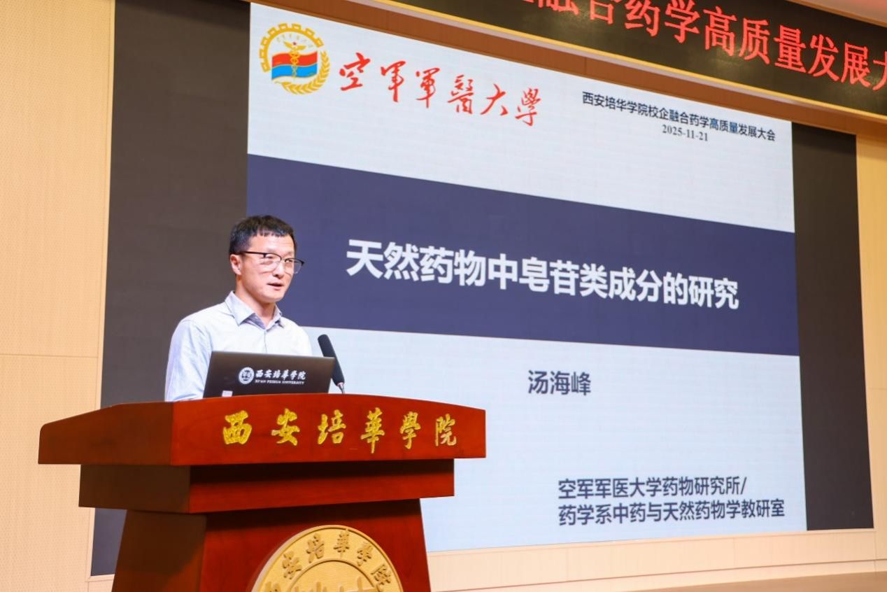 西安培华学院理事长姜波致辞。他深情回顾了学院发展历程,特别是产教融合的探索之路。他指出,当前学校发展迎来前所未有的机遇——已与三百余家企业开展深度合作,国际院士科技创新中心西安中心亦落户培华。他强调,姜维之老先生生前曾明确:办教育须坚守立德树人根本任务,并为人口老龄化加剧的中国培养复合型应用人才。他特别指出校企合作对药学专业发展的关键作用,期待与企业深化合作,共谱发展新篇章。