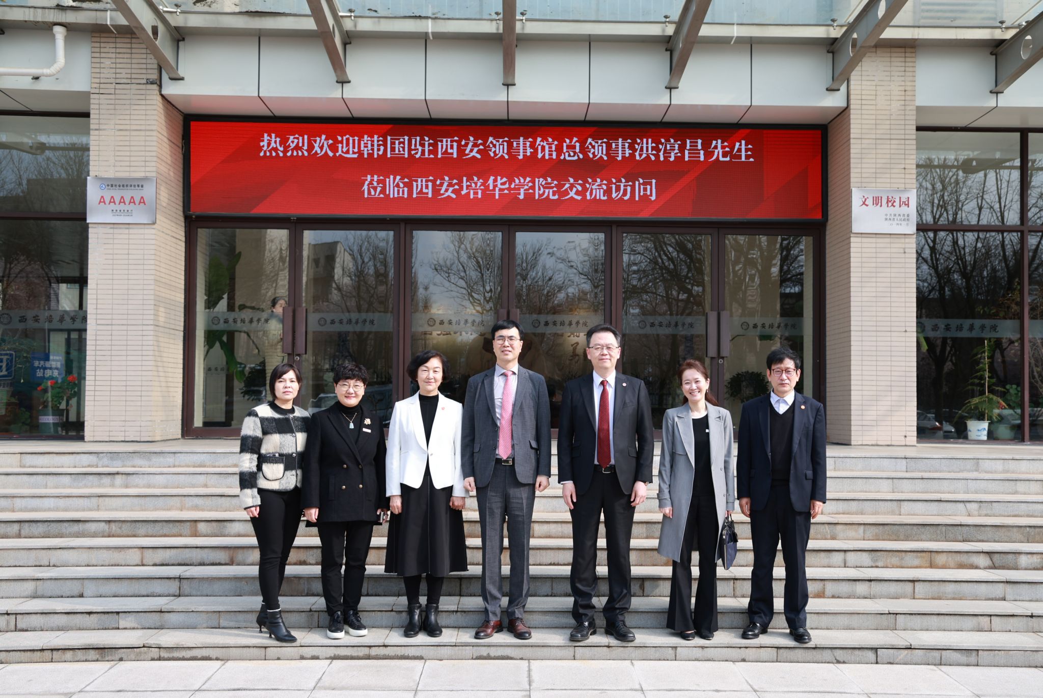 3月25日上午,大韩民国驻西安总领事馆总领事洪淳昌、领事曹银廷、实务官金娜一行莅临培华交流访问。学校理事长姜波、副校长刘越莲、国际交流中心主任王鹏、传媒与设计学院常务副院长徐莹、韩国籍教授崔圣伯陪同参观并座谈。