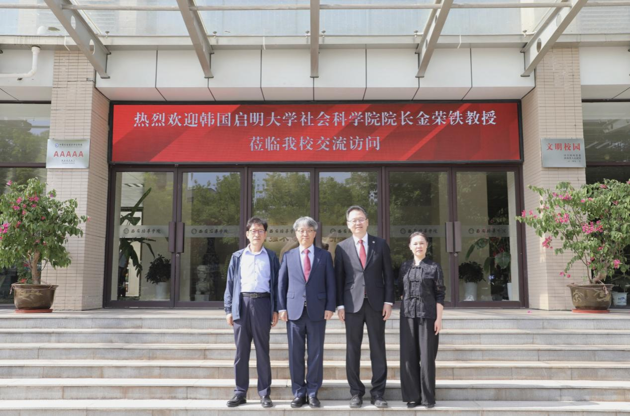 5月14日下午,韩国启明大学社会科学院院长金荣铁教授莅临西安培华学院交流访问。学校理事长姜波、国际交流中心主任王鹏、东北亚经济研究所所长崔圣伯教授陪同参观并座谈。