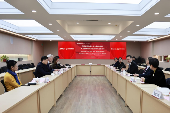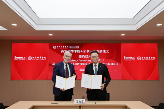 On December 11th, President David Agnew and his delegation from Seneca Polytechnic arrived at our university for an exchange visit. President David Agnew of Seneca Polytechnic, Agent of Seneca Polytechnic Yang Lan, Director, Regional Business Development, East and Southeast Asia of Seneca Polytechnic Nick Huang, Business Development Manager— the Greater China Maggie Chen,alongwith Chairman of the Board ofXPHUJiang Bo, International President of XPHU Richard Li-Hua, Director of the International Exchange CenterGraceWang , Executive ViceDean of the School of Media and Design Xu Ying, ViceDean of the Medical School Bie Beibei, and Director of the Preschool Education Department of the Humanities and International EducationSchool Wang Lulu engaged in a discussion and exchange, and held a signing ceremony as well as a Appointment Ceremony of Honorary Professor.