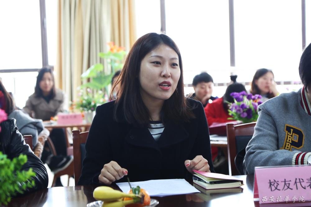 校友代表、西安寻之企业管理咨询有限公司市场部主管袁源追忆了当年在母校求学的青葱岁月。她说,今天,我们带着回家的喜悦之情重返母校,这里承载着我们的青春,我们牵挂母校的发展,为母校的进步而兴奋,为母校的跨越式发展而喝彩。今后,我们一定会更加关注母校的发展,用我们在工作中的成绩回报母校、回报恩师。