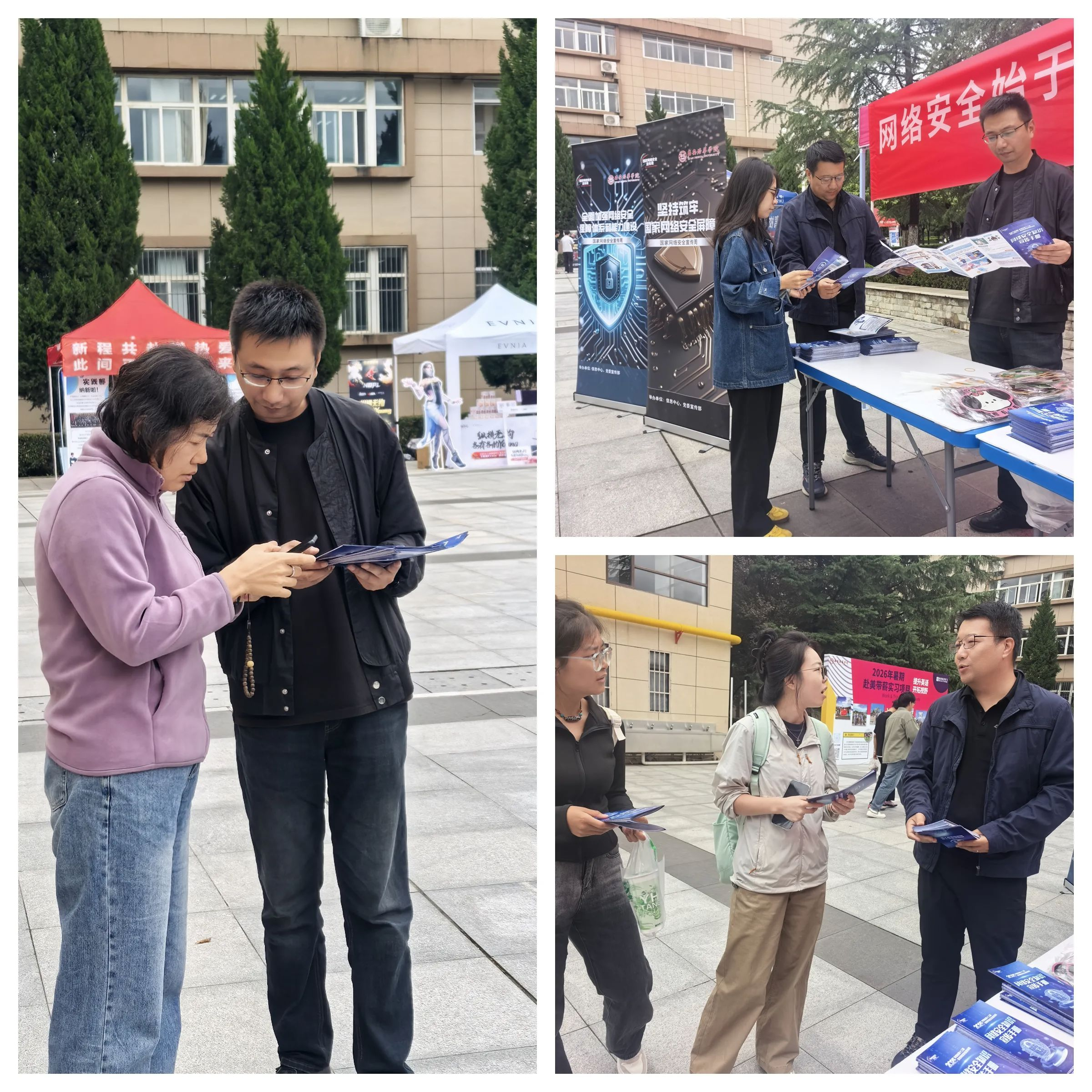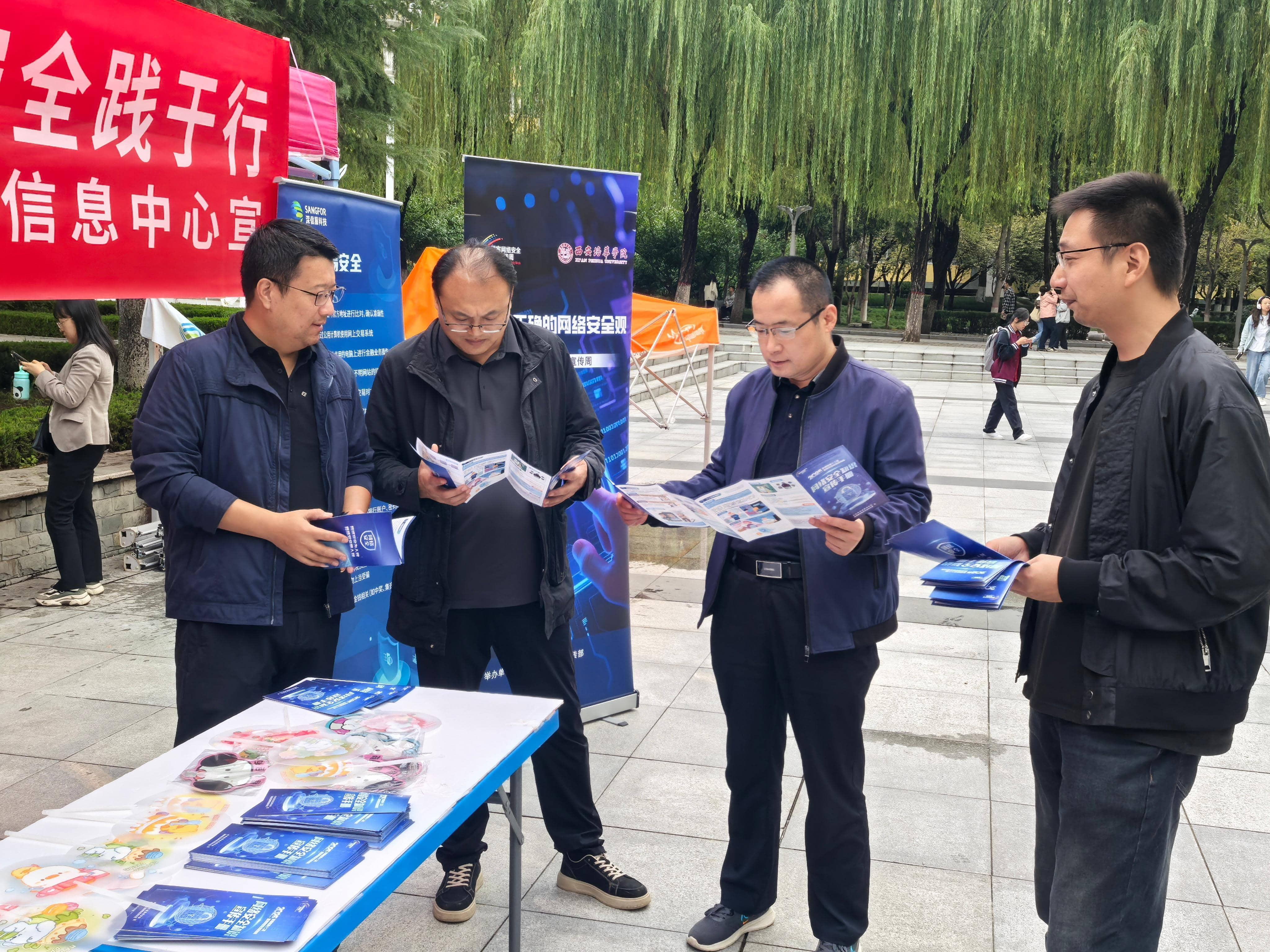 根据省教育厅关于开展国家网络安全宣传周活动通知有关要求,为全面落实《2025年西安培华学院第十二届国家网络安全宣传周活动实施方案》,9月19日上午,西安培华学院信息中心与党委宣传部联合在学校综合楼前广场组织开展了网络安全主题展示宣传活动,通过现场讲解、咨询答疑、发放宣传资料及互动礼品等多种形式,向广大师生普及网络安全知识。