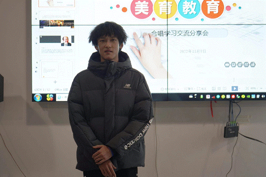 本次交流活动由艺术教育中心教师、大学生艺术团团长张茹老师为大家进行分享。张老师首先对合唱的概念进行了介绍,然后分别为给大家分析了几首中外作曲家的合唱代表作品,带领大家通过聆听合唱作品来感受合唱艺术的和谐之美。听完张茹老师的分享后,我校恒友合唱团的同学们积极发言,分别谈了自己对合唱艺术的认识。