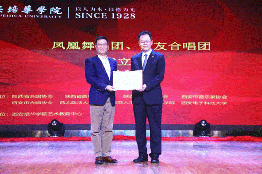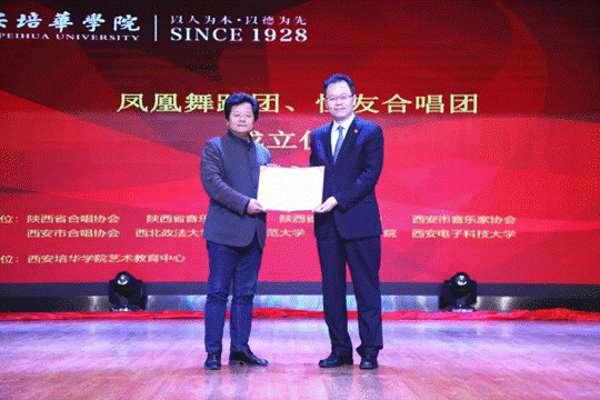 凤凰于飞时,恒友沓至来。朔风知我意,归置神禾塬。2020年11月25日14:30,西安培华学院“凤凰”舞蹈团、“恒友”合唱团成立仪式在大学生活动中心如期举行。