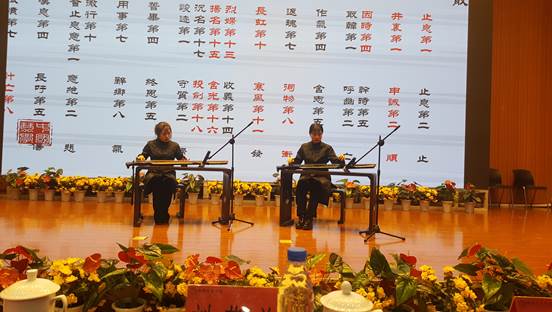 李村教授通过多媒体展示及现场演奏的方式让培华师生直观的了解了古琴这一中国传统乐器的艺术文化。中场,李村教授的学生张婉晴、孙葆滢、张登杰等九名同学还为培华师生倾心演绎了古琴经典曲目《流水》、《广陵散》、《普庵咒》、《幽兰》等八首作品,现场师生无不为其精湛的技法和神韵所赞叹。活动最后,在李村教授的带领下,伴随《阳关三叠》古琴曲,全场师生共同诵读诗词,让培华师生感受到古琴“清、和、淡、雅”的至高艺术境界。