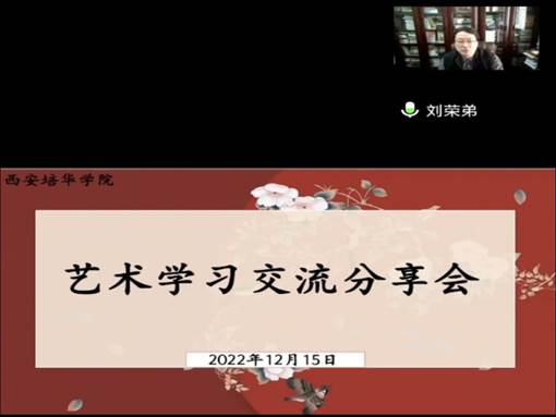 为积极推动我校美育教育教学,激发我校学生学习艺术的兴趣爱好,同时全面了解学生们的学习状态,2022年12月15日,西安培华学院艺术教育中心面向大学生艺术社团学生举办了舞蹈学习交流分享会。本次分享会因疫情在线上进行,由卫梓琪老师主持,艺术教育中心全体教师及艺术社团舞蹈队近百余名成员参加。