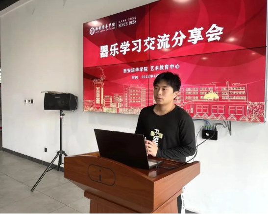 活动最后,艺术教育中心主任刘荣弟教授讲到:“此次交流活动能让同学们了解不同类型的器乐,探求更多专业领域的学习方法,同学们很好地交流和分享自己的学习体会。通过今天的分享,大家不仅仅获得了学习乐器的切身感受和快乐,同时在学习过程中感悟到艺术的真谛,坚定了自信,更加全面的表现了自己”。