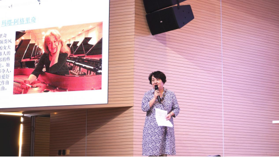 时江月教授以一位专业钢琴教师的视角,向大家介绍了西方17世纪以来在音乐的银河中闪烁着光彩夺目的几位卓越女性,分别围绕着“以女性为主题创作的音乐作品”、“女性作曲家的音乐作品简介”、“当代知名女性音乐家简介”三个主题进行讲述。讲座内容充实,图文并茂,将女性主义与音乐教育完美结合,时教授不仅给大家分享了珍贵的音乐视频资料,现场还让自己的学生演奏了著名作曲家李斯特的钢琴作品《钟》,给师生们呈现了多种艺术形式的视听盛宴,最后,时教授与我校师生就“女性艺术教育”问题与师生展开热烈讨论,在场师生为时教授的精彩讲座致以热烈的掌声。