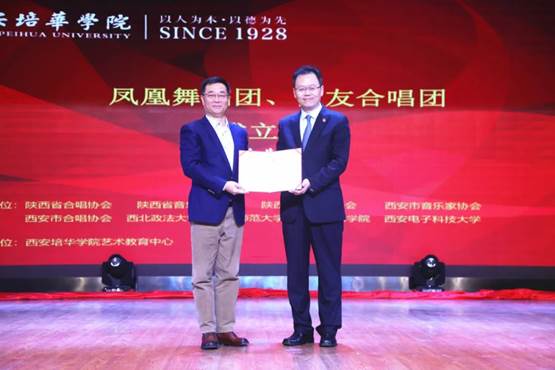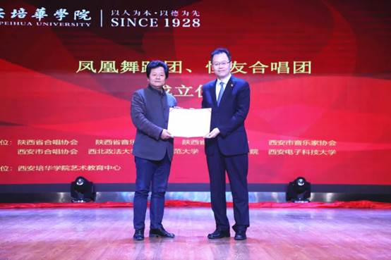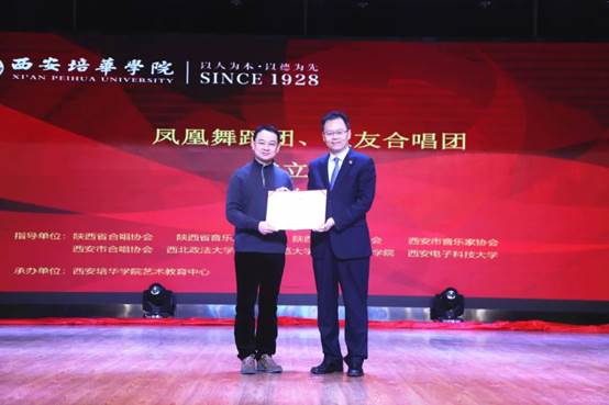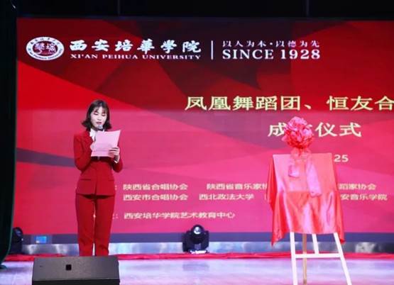 2020年11月25日14:30,西安培华学院“凤凰”舞蹈团、“恒友”合唱团成立仪式在大学生活动中心如期举行。