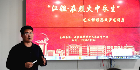 为全面贯彻党的教育方针,以立德树人为宗旨,秉承“育人为本,德育为先”工作理念,促进德育和美育教育全面实施。2023年3月29日中午12:30,由艺术教育中心李龙老师给我们带来的“江姐——在烈火中永生”艺术课程思政沙龙讲座在恒友楼一楼会议室展开,艺术教育中心教师及我校二级学院部分学生参加了本次活动。