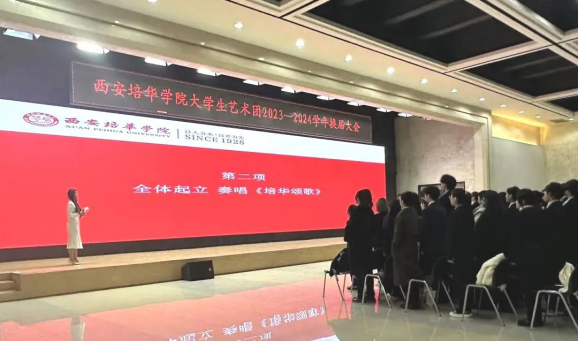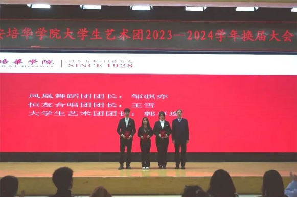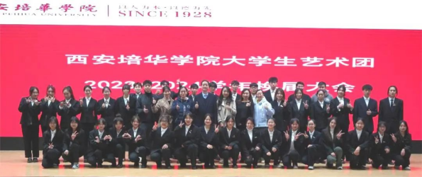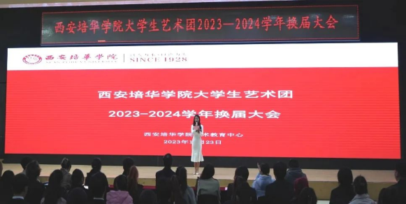 为保持大学生艺术团的学习积极性,增强学生干部组织管理能力,加强大学生艺术团队伍建设,2023年11月23日19:00西安培华学院大学生艺术团2023-2024学年换届大会在汇知楼阳光厅隆重举行。出席本次大会的有艺术教育中心主任刘荣弟教授,艺术教育中心雷孟颖祎老师、卫梓琪老师、张靖雯老师、齐堃老师、刘晗悦老师、李龙老师、宋亚平老师和李朝旭老师,以及大学生艺术团各队学生代表100余人。