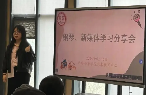 为积极推动学校美育教学要求,增强师生交流,将美育工作落实在实践中。4月15日中午,艺术教育中心在恒友楼三楼舞蹈训练室举办了美育系列活动——钢琴、新媒体学习分享会,本次交流分享活动由艺术中心李龙老师主持。