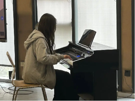“首先从我个人来说,我在学校练习钢琴已经半年多了,其中收获是有很多的。比如在弹钢琴时的指法,识谱的能力等等,再从钢琴队的方面来说,作为代表来象征钢琴队来进行分享,也是十分难得的一次机会。我个人而言其实是有一些基础的,其实我练了这么长时间还是有一些问题的,比如说速度有一些慢,或者说指型指法上有一些问题,老师会帮我纠正过来,让我更好的发展,接下来我就弹奏一段曲子给大进行展示。”