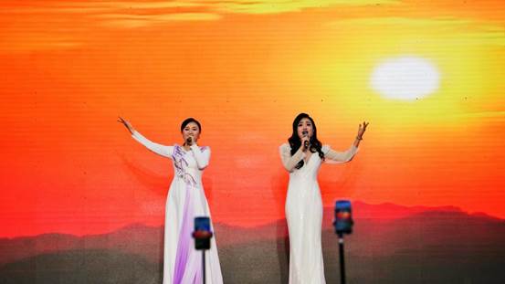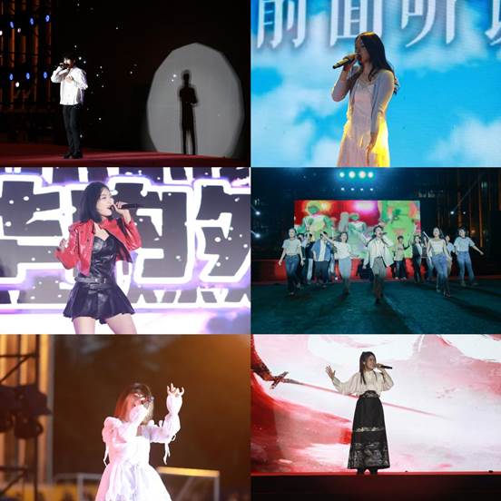 本次校园歌手大赛的决赛以艺术展演的形式呈现,节目丰富多彩。首先,由大学生艺术团电声乐队带来歌曲《反方向的钟》,将现场气氛烘托热烈。其次,大学生艺术团拉丁队的同学们用舞蹈《CHA CHA CHA》充分展示了我校大学生青春活力的精神面貌。艺术教育中心刘晗悦老师、齐堃老师献唱歌曲《水韵》,将六首带有“水”的民歌串烧在一起,致敬我国优秀经典民歌。西安音乐学院两位研究生作为嘉宾为大家演唱了歌曲《问春》,旋律优美,活泼轻快,展现了声乐艺术中灵动的花腔技术。最后,由往届歌手大赛获奖的选手为大家带来歌曲串烧《声生不息》,并为接下来比赛的选手加油打气。在一阵阵掌声与欢呼声中,正式进入到本届大赛的比赛环节。