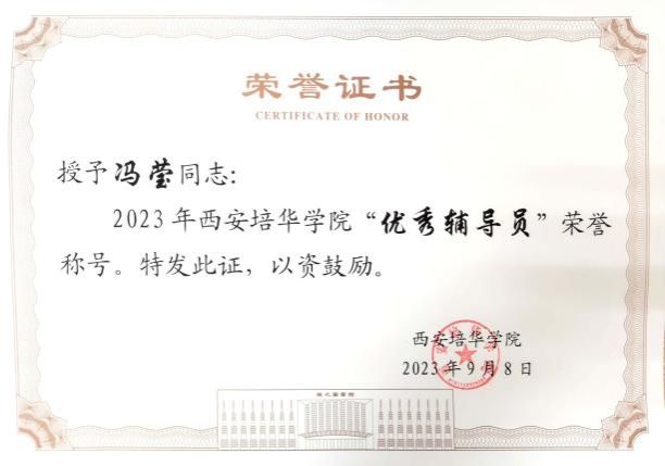 冯莹,女,硕士研究生,讲师,国家三级心理咨询师,国家二级职业指导师,健康管理师、全球职业生涯规划师(GCDF)、全球生涯教练(BCC)。长期在高校从事思想政治教育工作,主持校级课题1项,参与省级课题1项、校级课题6项,发表论文10余篇,先后斩获2023年陕西高校辅导员素质能力提升训练营”特别表现”奖、2021年“陕西高校就业工作优秀工作者、校级优秀辅导员、就业工作先进个人、优秀德育指导老师、名花有主大赛优秀指导教师、学生潜能发展优秀指导师”等荣誉,以专业与温情书写高校辅导员的育人担当。