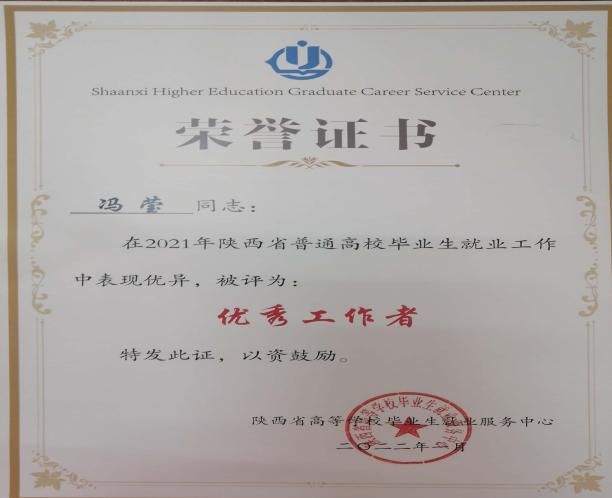 冯莹,女,硕士研究生,讲师,国家三级心理咨询师,国家二级职业指导师,健康管理师、全球职业生涯规划师(GCDF)、全球生涯教练(BCC)。长期在高校从事思想政治教育工作,主持校级课题1项,参与省级课题1项、校级课题6项,发表论文10余篇,先后斩获2023年陕西高校辅导员素质能力提升训练营”特别表现”奖、2021年“陕西高校就业工作优秀工作者、校级优秀辅导员、就业工作先进个人、优秀德育指导老师、名花有主大赛优秀指导教师、学生潜能发展优秀指导师”等荣誉,以专业与温情书写高校辅导员的育人担当。