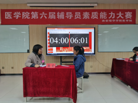 2021年是中国共产党成立100周年,也是“十四五”规划开局之年,为全面贯彻党的教育方针,习近平新时代中国特色社会主义思想、全国高校思想政治会议精神、落实立德树人根本任务,进一步推动辅导员队伍专业化、职业化建设,我院于2021年3月30至3月31日在8227举办第六届辅导员职业技能大赛初赛,担任此次比赛的评委医学院党委书记行政副院长王平安、医学院党委副书记何丽、学生服务中心干事董莹、学业导师胡晓佳。