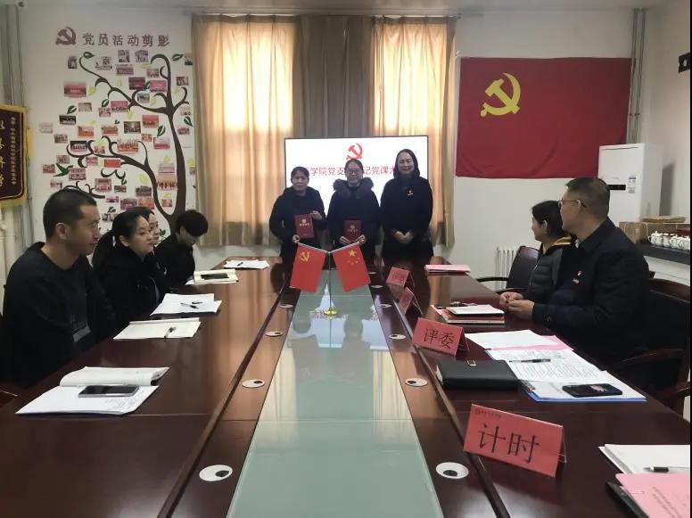 为了认真贯彻落实中央组织部基层党建工作重点任务推进会精神,充分发挥各级党组织书记的示范带头作用,确保高质量讲好专题党课,推进“两学一做”学习教育常态化制度化,医学院党委根据《中共西安培华学院委员会2020年二级党组织党建工作目标考核办法》(培华党组发[2020]6号文件)要求,于2020年11月25日上午10:00,在至善楼8330党员活动室举办党支部书记讲党课评选活动。本次活动由医学院党委书记兼行政副院长王平安、党委副书记何丽、教师代表吕清巧担任评委,7位党支部书记进行了党课讲授。