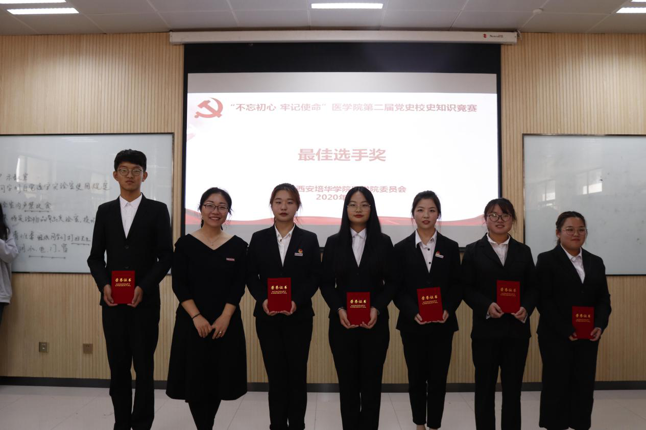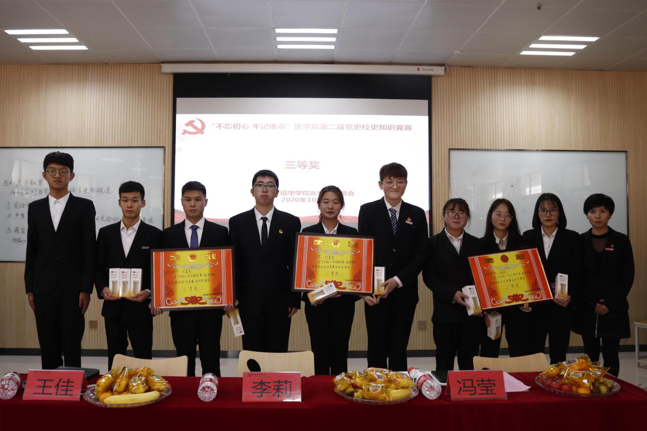 党史是一部为初心奋斗的历史,校史是对一所学校发展轨迹的真实记录,在党史校史知识竞赛中,师生共同触摸培华印记,回顾前浪之艰辛,展望后浪奋进之梦想。党史校史知识竞赛,激发了培华学子爱国爱党爱校热情,弘扬了培华精神。全院师生要将学习党史校史作为日常政治思想教育工作的一部分,提高政治思想水平,自觉践行社会主义核心价值观。将医学精神深植于心,外化于行,提升自我素质,为实现中华民族伟大复兴的中国梦做出自己应有的贡献。