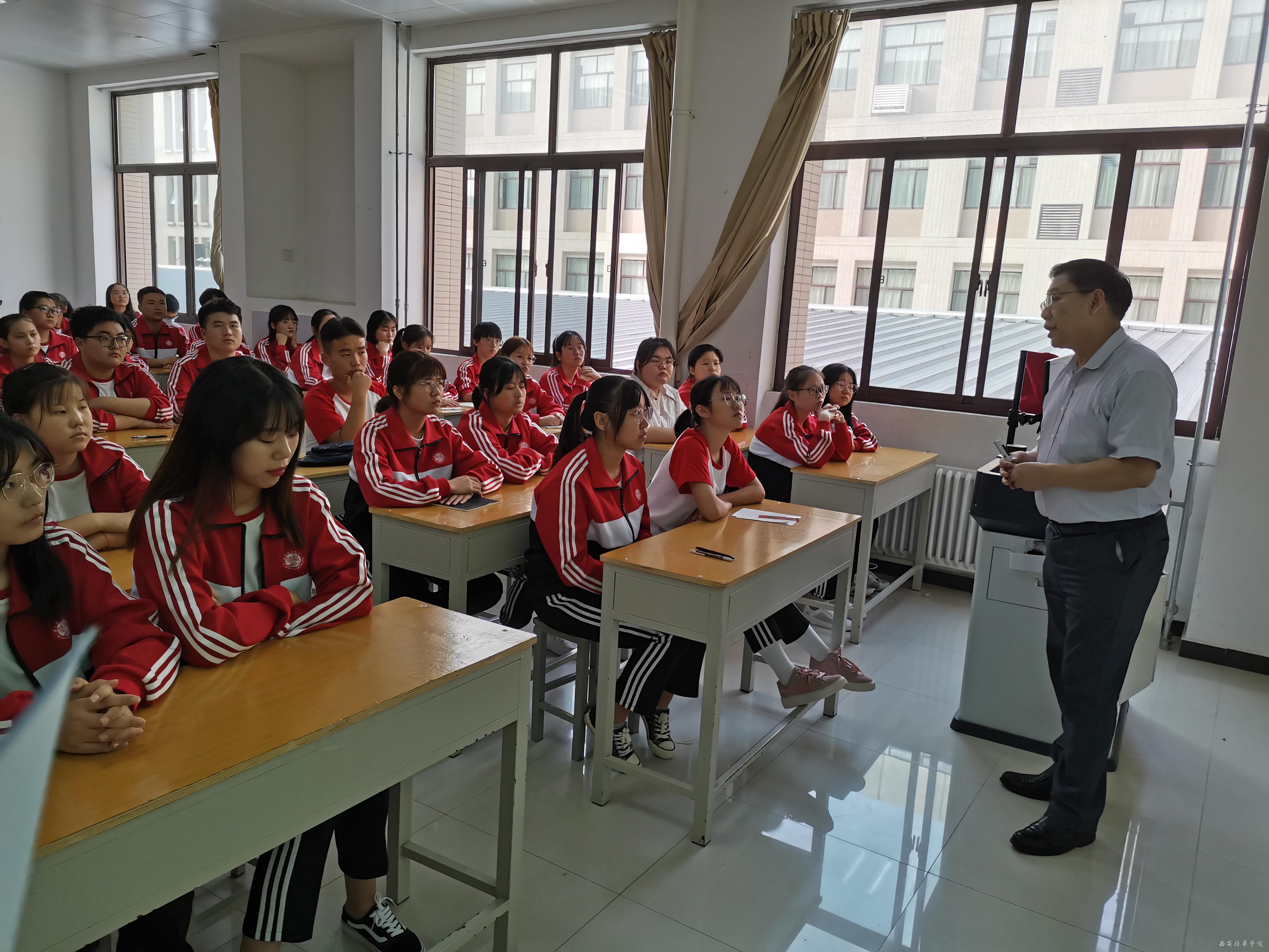 陈有亮教授是国家食品药品监督管理总局特聘执业药师工作专家,陕西省执业药师协会理事,国家教育部特聘中高职职业教育工作专家。在药学领域及执业药师培训上有着非常丰富的经验。陈教授从药物的起源与生命的重要性、药学专业介绍、工作单位(毕业去向)、提高学业的途径、建议与希望这几方面做了精彩的讲解,语言幽默诙谐、让同学们在轻松的氛围中学到了很多专业相关知识,同时对所学专业有了初步了解。最后陈教授还给同学的学习提出了建议和希望。