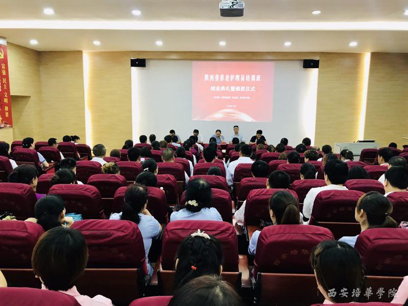 7月17日,由陕西省民政厅主办、西安培华学院承办的陕西省2019年初级养老护理员培训(第一期)顺利结业,结业典礼在培华学院博远楼J201报告厅举行。西安培华学院副校长、医学院院长于国亮,医学院副院长陈雷、党委书记姚斌,医学院基础系刘利兵教授及相关教师,以及来自省内各地市100名从事养老护理服务工作的护理人员参加了典礼。医学院常务副院长王平安主持结业典礼。