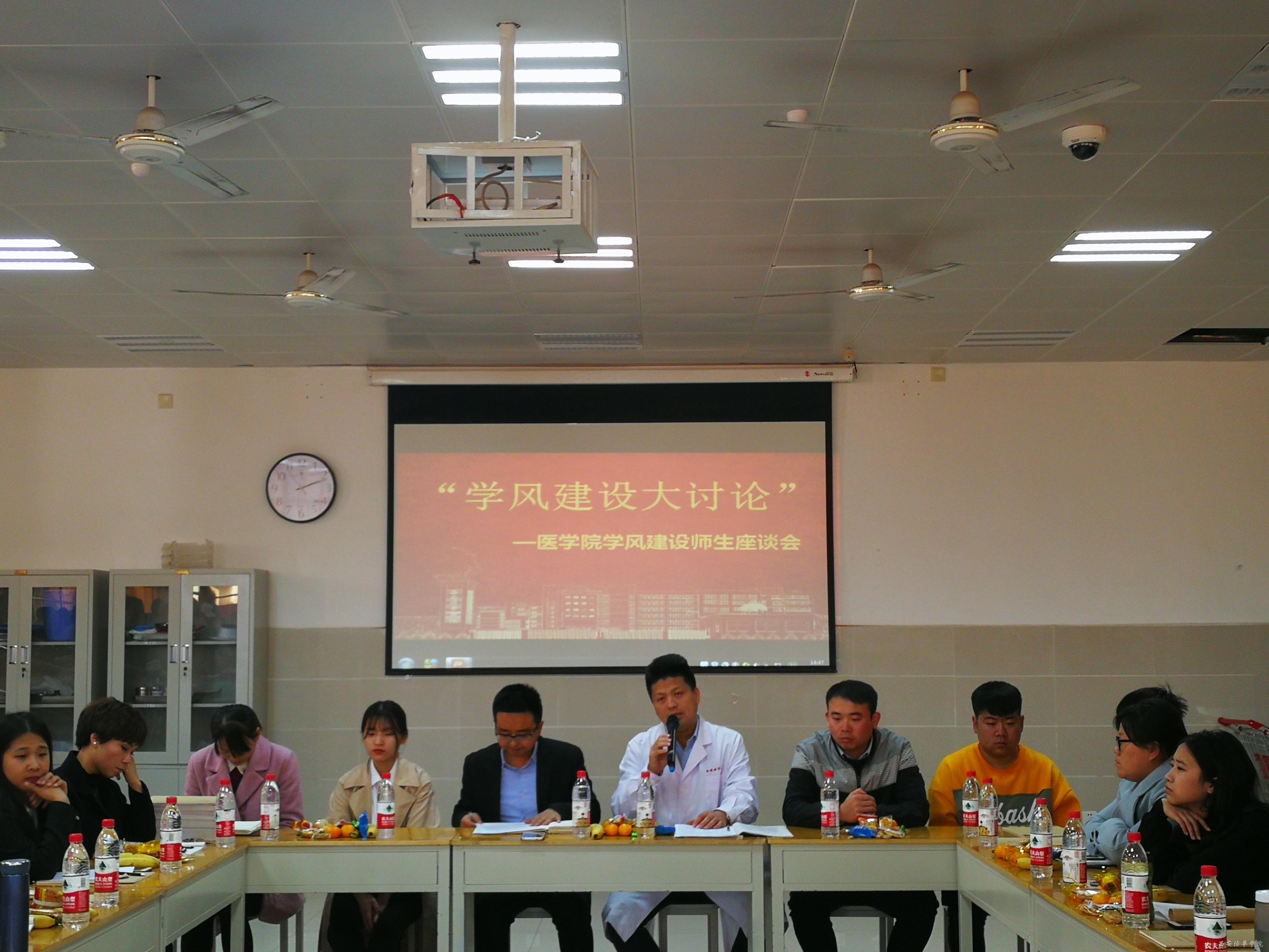 学风是大学精神的集中体现,是教书育人的本质要求,是高校立命之本和发展之魂。为进一步深入落实党的十九大精神和习近平总书记系列讲话精神,围绕“人才培养质量和效果”这一高校人才培养根本标准,深化教育教学改革,加快推进“四个回归”,营造良好的育人环境和学习氛围,不断提高我院人才培养质量。我院于10月26日下午14:00在8227召开了医学院学风建设师生座谈会,相关领导和教师参加了座谈会。
