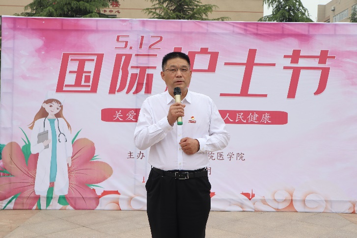 他首先向为维护群众健康而辛勤工作、无私奉献的全院护理人员致以节日的祝贺,向为医院建设和发展付出心血和汗水的各位护理老专家表示衷心的感谢!同时他说到作为时代新青年,要做理想远大、信念坚定的模范,做刻苦学习、锐意创新的模范,做敢于斗争、善于斗争的模范,做艰苦奋斗、无私奉献的模范,做崇德向善、严守纪律的模范。更重要的是作为一名医护生,要练就过硬的业务技能,提供优质的护理服务,保持良好的身心状态,营造和谐的护患关系,创建多彩的业余生活。